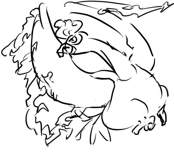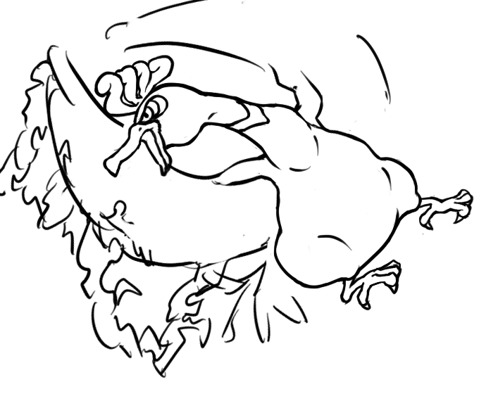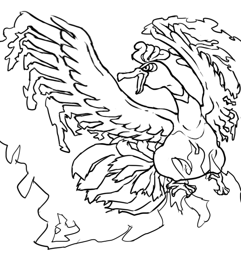 今回は不死鳥が炎の中で踊り狂うイメージで描きましたが考えたら図鑑説明的にはファイヤー=火の鳥でしたね。